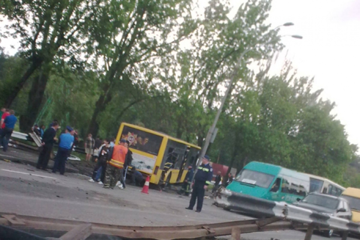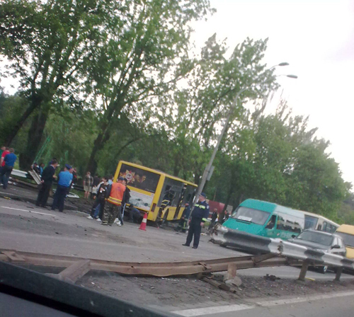 Как сообщает ИА «НАШ ПРОДУКТ», на трассе Киев-Чоп неподалеку от автостанции «Дачная» (при выезде из Киева) рейсовый автобус местного сообщения ЛАЗ, двигавшийся в направлении от Киева в сторону Житомира, по неизвестной причине потерял управление, снес оградительный барьер, выехал на встречную полосу движения, где столкнулся с микроавтобусом «Мерседес».