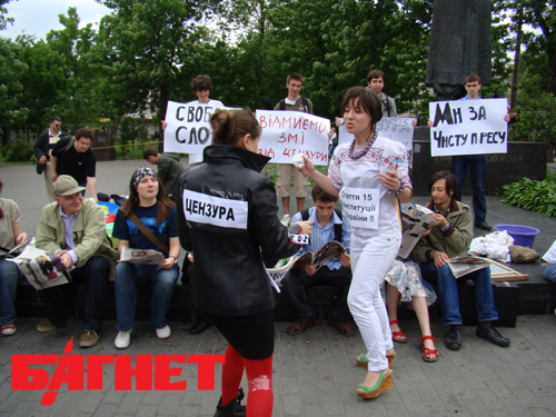 Сегодня в Киеве прошла акция «Стоп Цензуре!» в которой приняли участие около 20 столичных журналистов