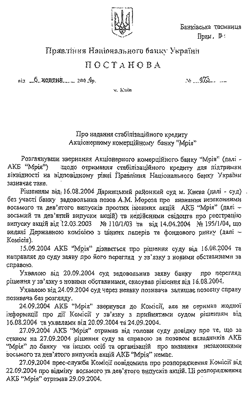 Данные средства, как было заявлено, предназначались для оздоровления АКБ «Мрія», якобы подорванного оттоком 11% вкладчиков физлиц.