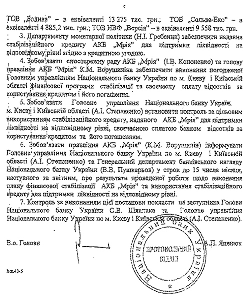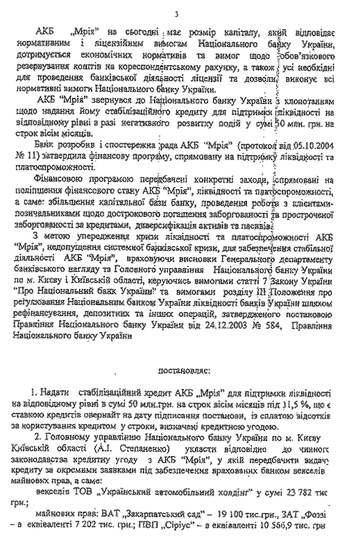 В тот период процентная ставка на межбанковском рынке была от 20% годовых. Кредиты по ставке 11,5% НБУ выдавал только под залог ценных бумаг, эмитированных государством, тогда как «Мрія» получила кредит по ставке 11,5% на 8 месяцев под залог векселей и корпоративных прав предприятий. (cм. фото документа).