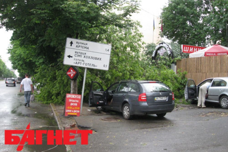 Сегодня около 12:00 дня в результате падения дерева по ул. Дегтяревской, 13/24 в Шевченковском районе возле здания Государственной таможни пострадало два автомобиля Skoda. Только по случайному стечению обстоятельств значительных повреждений автомобилей и жертв удалось избежать. Дерево повредило капоты автомобилей, зацепило ветками лобовое стекло и крыши.