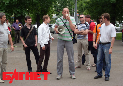 Сначала участники акции, а их собралось совсем мало, собрались под министерством и в мегафон попросили Петра Куликова выйти к митингующим. Понятное дело, никакой реакции не последовало.