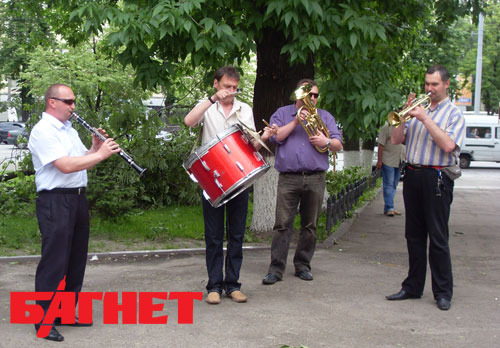 Все действие сопровождалось игрой небольшого оркестра, который исполнял символичное «Прощание славянки» и «One Way Ticket».