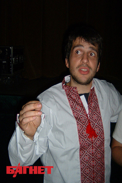 Не обидели фанаты и на этот раз. От киевских поклонниц Петру досталась белоснежная «вышиванка». Всем остальным музыкантам, в этом плане повезло куда меньше, но и про них тоже не забыли – коллективу подарили мягкие игрушки из серии «hand made». Не откладывая дело в долгий ящик, Налич подарок тут же примерил. Он оказался не только в пору, но и к лицу. Что не удивительно – как выяснилось у Петра украинские корни. «Мой дедушка, по маминой линии, Марк Семенович Волченко, был родом с Донбасса, из деревни Семикозовка. Он вначале получил какое-то техническое образование – слесарное, если мне не изменяет память, а потом поехал в Москву, где поступил учиться в Московский авиационный институт. Там он познакомился и женился на моей бабушке. А уже после войны, окончив Высшую дипломатическую школу, он до самой смерти поработал дипломатом, объездив более 80 стран. Он был замечательным человеком, но я, к сожалению, его плохо помню, потому что он умер в 1984 году», - разоткровенничался Петр Налич.
