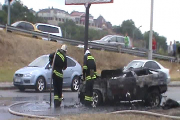 Несколько пожарных машин пытались потушить возникшее возгорание, но от авто осталось только жалкое подобие