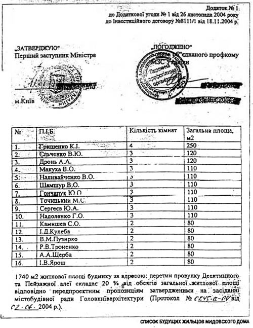На данный же момент читателям следует учесть всего лишь один нюанс: благодарность «Ум-Инвеста» за «крышевание» МИДом конфликтного строительства в историческом центре Киева настолько велика, что компания, по слухам, готова передать мидовцам элитное жилье за абсолютно символическую плату, которая не превысит расходов на стройматериалы! Речь идет всего о нескольких десятках тысяч долларов. Рыночная же стоимость, скажем, 250 квадратных метров на Пейзажке, как ни крути, а не опустится ниже 2 миллионов долларов. Откуда же такой альтруизм?! Быть может, его можно связать с тем, что МИДу запрещено строить что-либо на территории Украины? Бытует мнение, что за «Ум-Инвестом» могут стоять все те же высокопоставленные мидовцы. Из этого может следовать, что затеяв такое грандиозное строительство (9-этажный монстр предполагает наличие подземного паркинга, а также бассейнов и теннисных кортов на крыше), МИД, все же располагает некими средствами…
