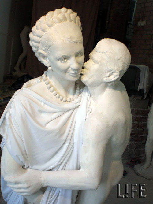 При этом на скульпторе президента Украины автор решил сэкономить: в отличие от мраморной Юлии Тимошенко, Виктор Ющенко будет выполнен из гипса и в несколько уменьшенных пропорциях.