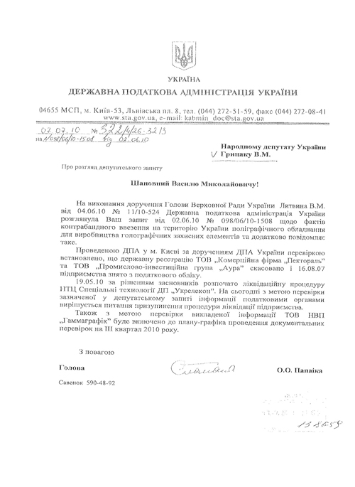 Также ГНАУ собирается проверить фирму «Гаммаграфик (см. ниже фото документа), которая участвовала в контрабандной цепочке и разворовывании госсредств, и учредитель которой – Руслан Янгаличев – одновременно являлся директором НТЦ СТ ГП «Укрэлекон».