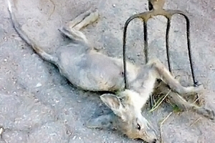 Похоже, в Черниговской области найдено новое животное, которое таки стоит занести в Красную книгу не только Украины, но и всего мира. Очередную чупакабру, которая еще совсем недавно считалась мифической, убили в поселке Чемер Козелецкого района. Местные жители утверждают, что это мать детеныша, которого они же недавно насадили на вилы. Тогда непонятное животное увидели в центре села две девушки, и подумали: померещилось из-за жары. После убийства оказалось, что гроза селян похожа на животное, которое почти месяц назад пристрелил техасский фермер. Убитый хищник на первый взгляд напоминал лису породы сфинкс, то есть без меха, с длинным хвостом и острыми клыками. Передвигался зверь как кенгуру, прыгая на задних лапах. А в его желудке после вскрытия нашли много шелковицы.