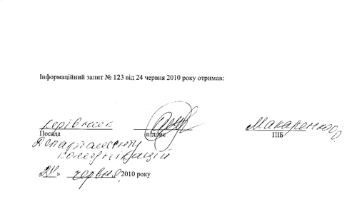 Уведомление о том, что руководитель пресс-службы «Фронта перемен» Оксана Макаренко приняла у журналистов информационный запрос по поводу Хоменко