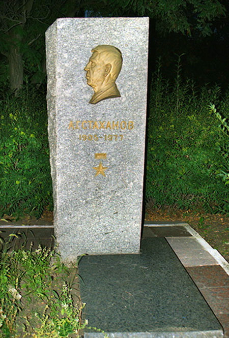 Памятник Стаханову в городе его имени и могила Алексея Григорьевича в Торезе