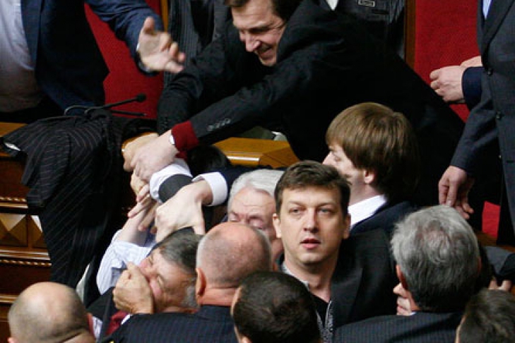 Спикер ВРУ Владимир Литвин сказал журналистам, что ему жаль депутатов, которые из-за своей личной позиции страдают физически в Верховной Раде, «как на производстве». Но, в то же время, он отметил, что такие травмы через несколько лет могут дать о себе знать, повредив здоровью. Однако каски депутатам носить в парламенте нельзя.