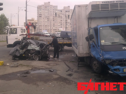 Жуткая авария на Троещине: «Опель» буквально размазало о грузовик (ФОТО)
