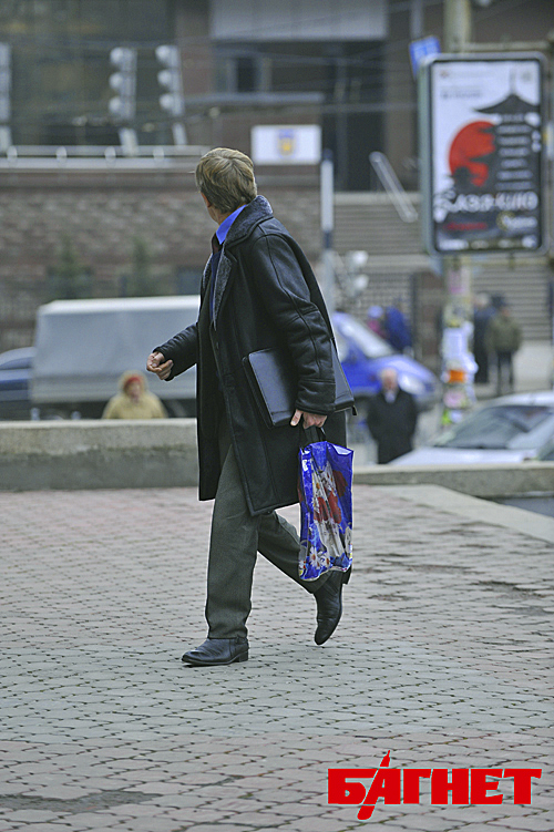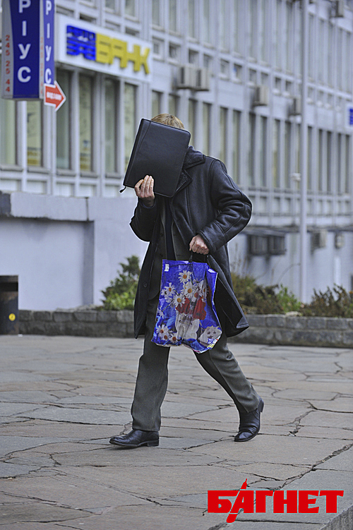 Поняв, что его усилия не произвели на фотографа никакого впечатления, Коваленко пустил в ход тяжелую артиллерию – стыдливо прикрыл лицо кожаной папочкой (под бумагу формата А4), одновременно пытаясь «защитить» тело (уверены не оно интересовало нашего фотокора) полиэтиленовым кулечком времен развитого социализма.