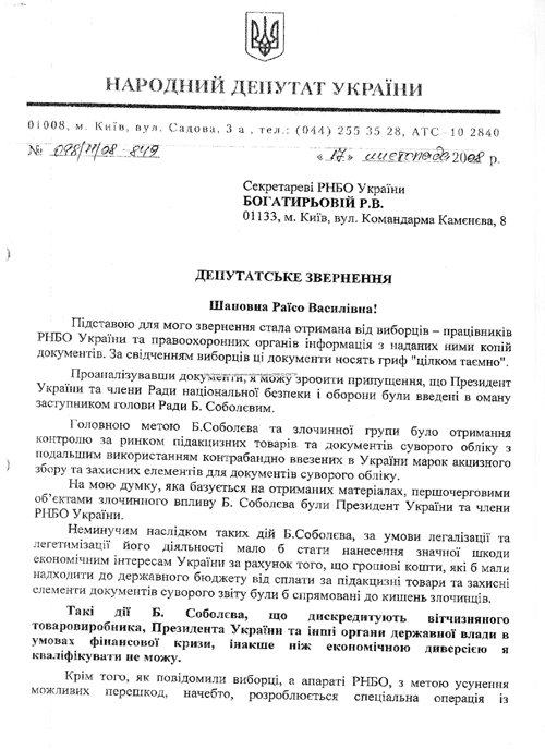 Ошибки Богатыревой явно свидетельствуют о спешке и небрежности, с которой готовился ответ народному депутату. Секретариат СНБО упорно не желает отвечать по сути заданных парламентарием вопросов (см. ниже фото депутатского запроса). Дело в том, что ранее Богатырева уже писала отписки в таком же духе: «рассматривается, обращайтесь в соответствующие органы и т.д…». Хотя в депутатском запросе звучат совершенно конкретные вопросы относительно коррупционной деятельности чиновников СНБО, на которые можно ответить хотя бы односложно – «Да» или «Нет» – не привлекая для этого СБУ или другие правоохранительные органы...