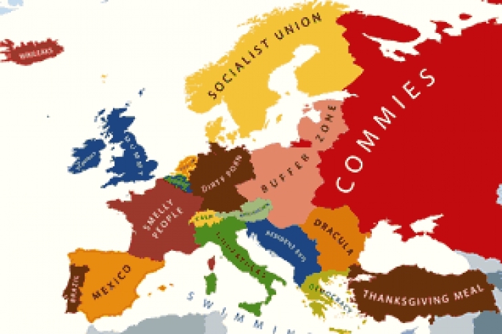 На карте «Европа глазами Великобритании» европейские соседи Соединенного Королевства обозначены как «Злая объединенная европейская империя», россияне названы «Большими транжирами», а Украина остается для британцев необычной страной, сообщает The Telegraph.
