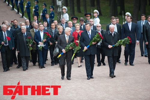 Только что Президент Украины Виктор Янукович, премьер-министр Николай Азаров и спикер Верховной Рады Владимир приняли участие в возложении цветов к Монументу жертвам Бабьего Яра по случаю 69-ой годовщины трагедии в Бабьем Яру.