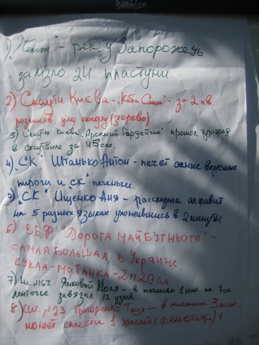 Во время праздника будущие скауты «делились» своими скаутскими рекордами на ватмане