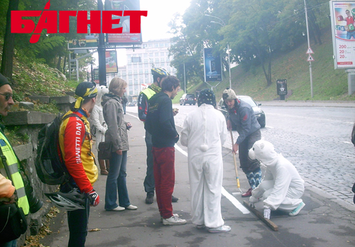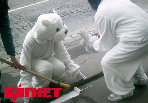 Однако, поскольку городские власти до сих пор не выполнили своего решения, молодежь решила создать цивилизованные европейские условия для велосипедистов сами, с привлечением… белых медведей.