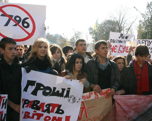 Львовские студенты присоединились к всеукраинской акции протеста против введения платных услуг в высших учебных заведениях Украины. Студенты требуют не вводить в действие постановление Кабмина № 796, которая позволяет вузам вводить «платные услуги».
