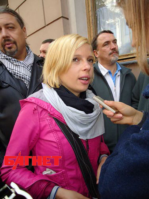 На акцию протеста против законопроекта «О языках в Украине», которая сегодня утром началась под Верховной Радой, пришли известные писатели и издатели. Среди них корреспондент «Багнета» успел заметить братьев Капрановых, Ирену Карпу, Сергея Понтюка. Все они поддерживают митингующих символичными надписями на груди «Час дати відсіч».