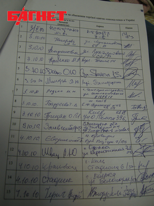 В отдельных магазинах секонд-хенда также собирают подписи граждан, которые против их закрытия. «К нам заходят люди с других областей и городов Украины, оставляют свои подписи и даже письма Бродскому, выражая свое недовольство закрытием секонд-хендов», - рассказала Влада, одна из продавщиц магазина ношенной одежды. По ее словам, в одной лишь только их точке собрано больше 600 подписей.