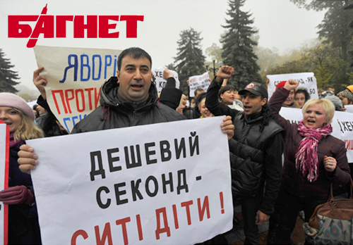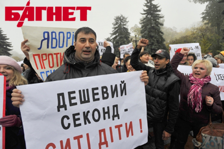 Сегодня под стенами Верховной Рады Украины прошла всеукраинская акция протеста против закрытия секонд-хендов. Организаторами митинга выступила ассоциация «Дилеры одежды секонд-хенд». Люди требовали от украинских политиков не допустить закрытия секонд-хендов и грозились посадить на кол инициатора этого новшества Михаила Бродского. (Напомним: «Багнет» уже писал о том, что одиозный глава Госкомпредпринимательства, одевающийся в недешевую одежду, своими сомнительными инициативами может буквально «раздеть» всю страну. – Ред.).