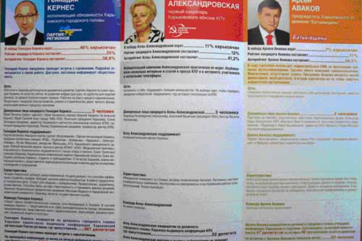 Согласно данным, опубликованным в буклете, лидирует в избирательно гонке и.о. Харьковского городского председателя Геннадий Кернес, за ним с большим отрывом идет кандидат от КПУ Алла Александровская, а на третьем месте разместился выдвиженец БЮТ Арсен Аваков.