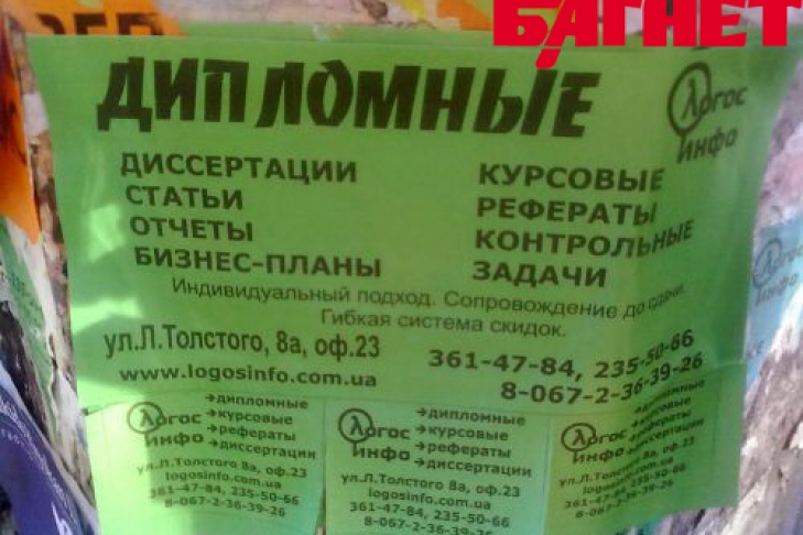 Мы не говорим о людях, покупающих диплом о высшем образовании (как уже сообщал «Багнет», купить «корочку» в Украине не составляет большой проблемы, а обойдется такое удовольствие всего в каких-то $700 до $1700). Мы говорим о людях, которые учились в вузах, но в силу тех или иных причин решили переложить на чужие плечи написание дипломной работы. А также о тех «ученых», чьи диссертации за определенную сумму денег писали специально обученные люди из специальных агентств, специализирующихся на подготовке различных работ (от рефератов до кандидатских), и которые удалось защитить перед Высшей аттестационной комиссией.