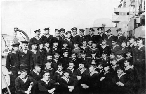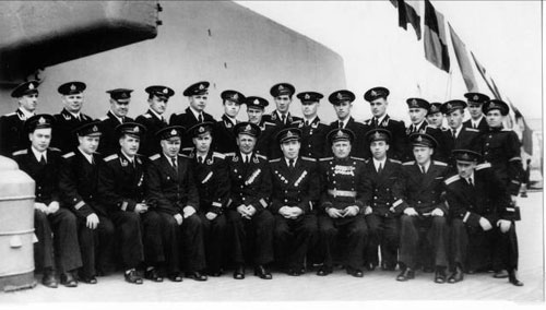 Часть офицерского состава линкора. Это далеко не весь его командный состав, но по велению рока, на фотографии представлены те, кто (за исключением командира корабля и командира БЧ-5) встретил 29 октября 1955-го на его борту…