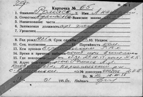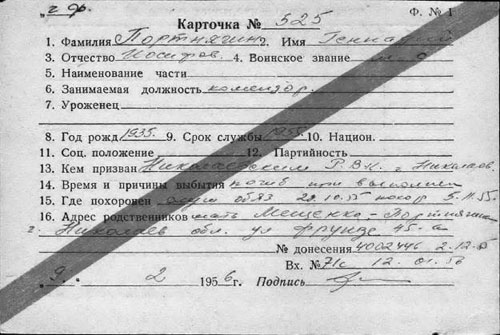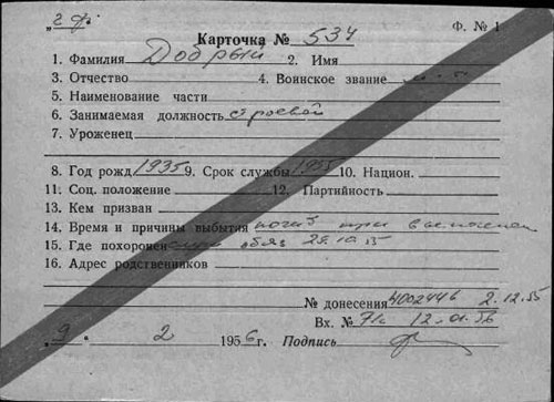 А это формуляр на погибшего из состава пополнения бойцов СА, прибывших из Австрии. Данные отсутствуют…