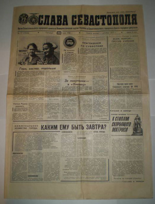Газета «Слава Севастополя» за 15 мая 1988-го. Она первой подняла вопрос о сохранении памяти экипажа линкора «Новороссийск». Статья Николая Черкашина «К стопам скорбящего матроса» разбудила совесть России и Украины…