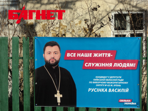 А еще, тут мы увидели священника, баллотирующегося в депутаты от партии «Сильная Украина».