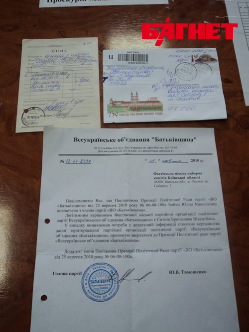 «Когда мы получили это письмо, то очень удивились – на конверте написан киевский адрес, а внутри вложен листок-опись, на котором стоит печать и четко видно, что написано «Фастов». Они тут за углом письма от Тимошенко сочиняют?», - удивляется Чумаченко.