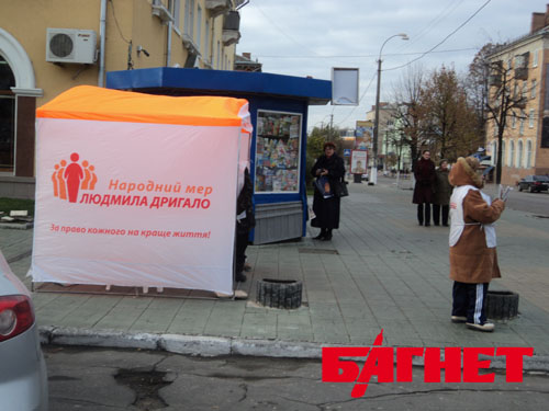 Очень активную уличную агитации развернули представители кандидата на пост главы города Людмилы Дрыгало.