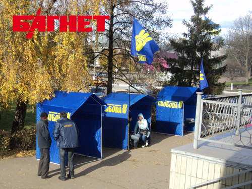 В следующий пункт назначения наша мобильная бригада опоздала. По крайней мере, так нам сказали представители «Свободы», разворачивавшие свои агитпалатки напротив здания, где разместилась городская избирательная комиссия.