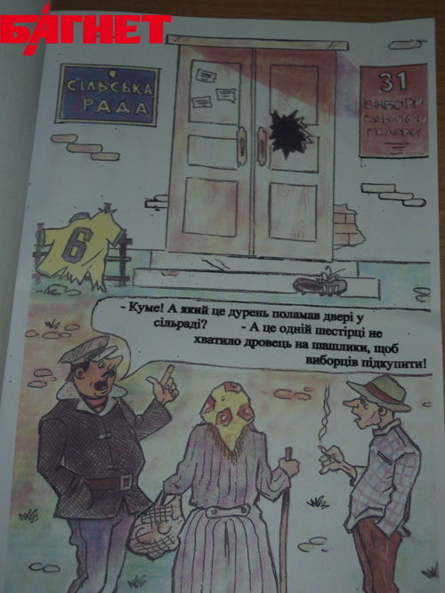 Не обошлось и без смешного. Так, в селе Красная Мотовиловка корреспонденты с удивлением узнали, что избирательный участок разместился в местном баре. В этом же селе в руки журналистов попал чудесный образчик «черного» пиара, на одного из кандидатов претендующего на пост сельского головы. В брошюре говориться, что кандидат подкупает избирателей шашлыками! А в качестве дров использует деревянные двери сельсовета.