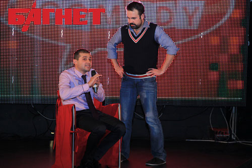 Андрей Молочный также не остался в долгу. Пользуясь моментом, за неимением в наличии самого Антона Павловича, он поблагодарил Влада не только за присутствие: «Приятно видеть Вас в этом зале. Спасибо вашей семье за красивую фамилию для названия нашего дуэта».