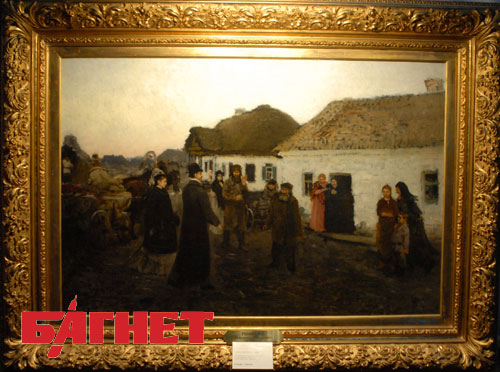 «Что мне особо приятно, так это то, что в нашей небольшой коллекции топ-лотов многие работы имеют непосредственное отношение к украинской культуре и заставляют по-новому взглянуть на некоторых художников, в частности на Репина, – рассказала на презентации топ-лотов Аукционного дома MacDougall’s Екатерина МакДугалл. – Это работа, которая называется «Возвращение в отчий дом». Отчий дом, разумеется, был в Чугуево, под Харьковом от куда Репин ушел учиться в столицах почти как Ломоносов: в лаптях. Учение прошло успешно, три года из них он провел в Париже. И вот после 13-летнего отсутствия он возвращается в отчий дом, в котором сейчас мемориальный музей Репина, где на пороге, поддерживаемая служанкой, стоит его мать».
