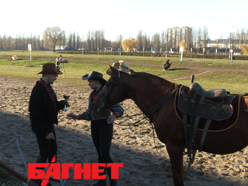 Продолжилось выступлением коллектива «Украинские казаки», участники которого на этот раз облачались в ковбоев.
