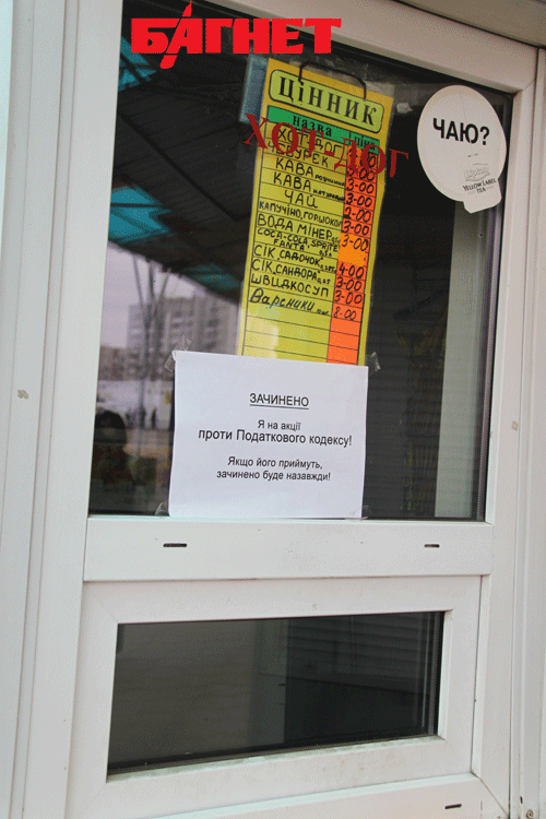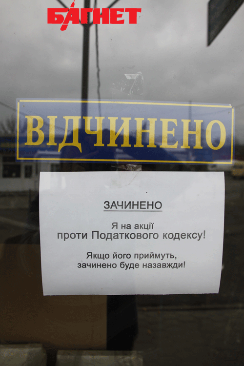 Во вторник, 16 ноября, предприниматели Львова проводят забастовку с требованием не принимать новый Налоговый кодекс, сообщает ИА «НАШ ПРОДУКТ» со ссылкой на представителя ассамблеи предпринимателей малого и среднего бизнеса Украины. Кроме рынков не работают многие частные магазины и парикмахерские. На дверях торговых точек висят надписи типа: «ЗАКРЫТО. Я на акции против Налогового кодекса. Если его примут, закрыто будет навсегда!».