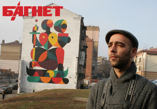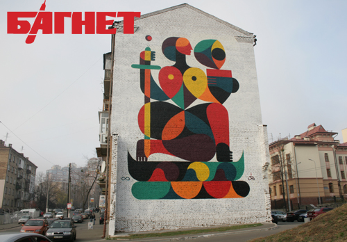 Французский стрит-художник Гийом Альби нарисовал граффити-панно на фасаде дома по улице Златоустовской, 20