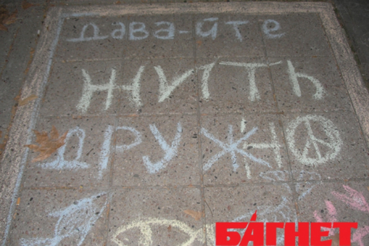 Также вчера вечером в сквере Победы у здания Верховного совета АРК появились цветные сердечки. Первый флешмобер разложил по скверу пакеты с разноцветными мелками и бутылки с водой для мытья рук. После этого по сценарию, появляющиеся студенты брали мелки и разрисовывали тропинки сквера. Буквально через 15 минут там красовались поздравления с Днем студента, признания в любви и другие художества. Затем, когда свободное от осенней листвы место закончилось, молодежь переключилась на ступени здания Верховного совета Крыма. В результате там появилось множество сердечек и сердец, а также надписи «Давайте жить дружно», «Злым быть плохо», «Пейте чай», «Курить не модно» и т.д.