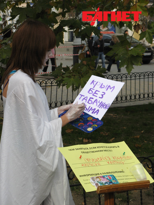 В Симферополе прохожим предлагали вязать вместо курения (ФОТО)