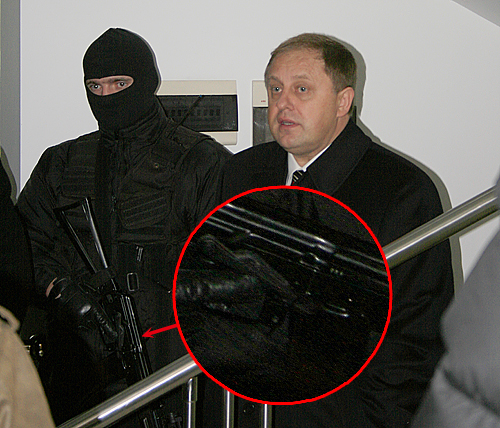 Наверное, именно им и предназначалось до предела напугать и устрашить. И напугали! Ученые, IT-специалисты соседних с «Голографией» компаний, расположенных в этом же офисно-производственном комплексе, как раз следовали на обед. Среди идущих на обед сотрудников было много женщин. Каково же было их удивление и искренний испуг, когда они увидели людей в масках, демонстративно выставляющих напоказ оружие. Курки взведены. Оружие снято с предохранителей. Пальцы на спусковых крючках (см. фото ниже).