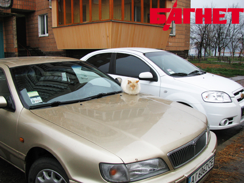 На одной из парковок Украинки охранником добровольно «подрабатывал» пушистый кот. Нес службу котик прямо на капоте авто. Выбирал котик подзащитный автомобиль по одному только критерию: машина должна была быть под цвет кошачьей шерсти.