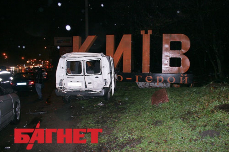 От удара тяжелого грузовика микроавтобус вылетел на обочину, где врезался в стелу «Киев город-герой». В результате аварии госпитализированы с травмами разной степени тяжести трое пассажиров маршрутки. Водителю оказана медицинская помощь на месте.