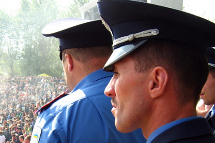 Сдерживающие предпринимателей милиционеры «метят территорию» возле Администрации президента (ВИДЕО)