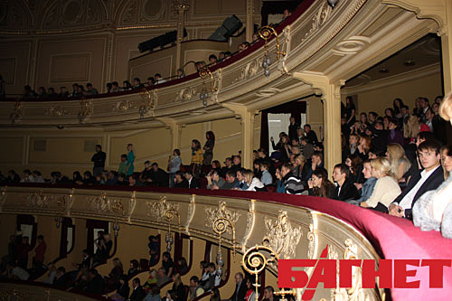 Не знаю у кого как, а лично у меня, как только моя нога вступила на территорию оперного театра, сложилось такое мнение, что я попала на «Титаник», ну, или там его филиал. В партер нам, людям с бейджами вход был заказан. «Идите на 2 и 3 ярус», - поступила команда. Поднимаемся на второй этаж, дверь 1: «Сюда нельзя, у меня места даже не ступеньках люди сидят», - перегораживает нам путь нафталиновая тетенька у входа. Дверь вторая: «Ко мне нельзя, этаж переполнен, поднимайтесь выше». Поднимаемся этажом выше – та же картина: никуда нельзя, везде все занято. Организаторы хватаются за головы. Проблема раздутая из ничего, и виной тому не артисты, а работники оперного, которые такого наплыва посетителей не видели, наверное, со дня покушения на Столыпина. Да-да, не удивляйтесь. Многие работают здесь с тех самых незапамятных времен, причем успели сделать за это время головокружительную карьеру, от вахтерши до дежурной, а то и до старшей дежурной. Но, пожалуй, достаточно с них рекламы. Давайте лучше о виновниках торжества.