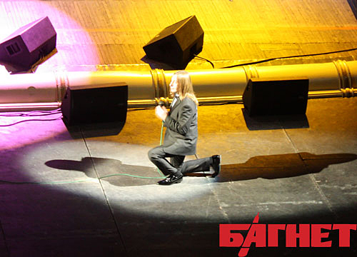 Немало во время концерта отличился Шура Би-2. Он не только признался в любви своей жене, которой встав на одно колено перед ложей бенуара, посвятил песню «Падает снег», но и неожиданно спел голосом Владимира Шахрина («лидер группы «Чайф») во время исполнения песни «Достучаться до небес», которую группы написали вместе. «Вы только ему об этом не говорите» - попросил Шура. Мы пообещали. Так что, уважаемые читатели, храните эту тайну под семью печатями. Я ж с вами по секрету поделилась.